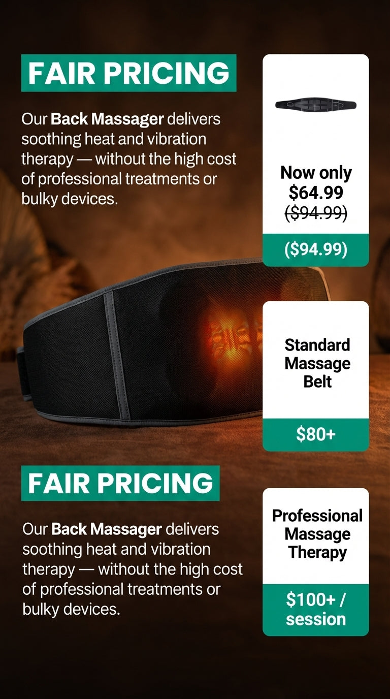 Unlike bulky, wired devices, our wireless back massager combines heat therapy and vibration in a compact, portable design. It's powered by a 5000mAh rechargeable battery, so you can take it anywhere without needing a power source. Additionally, the adjustable fit ensures comfort for all body types, while the infrared heat provides deeper muscle relaxation compared to other massagers.