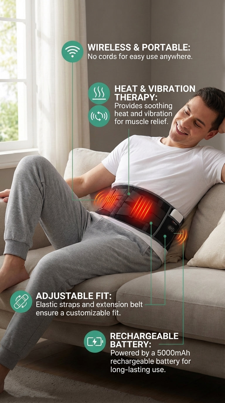Relieve back pain with adjustable compression and soothing heat therapy for fast, lasting comfort